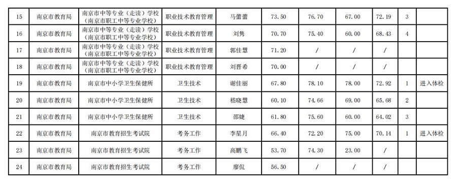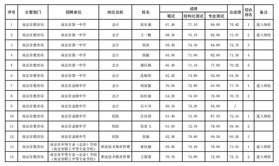 南京市教育局所属事业单位2024年统一公开招聘工作人员成绩公示