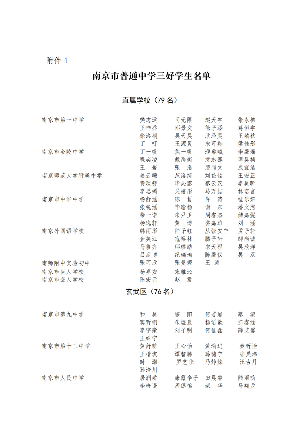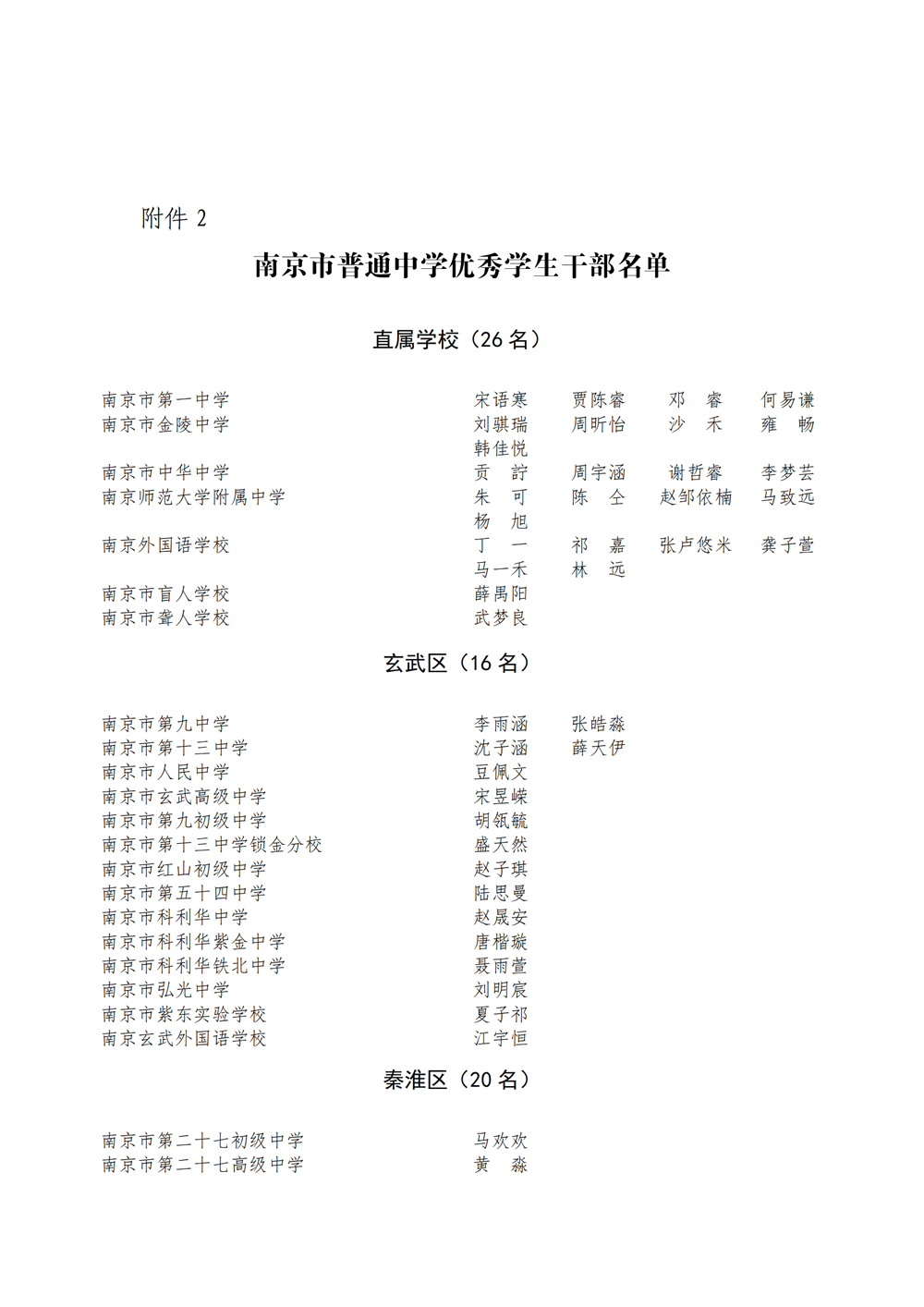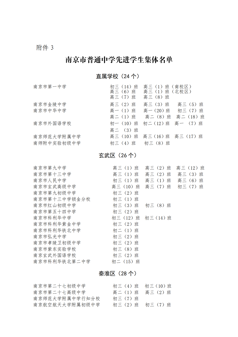 关于2023-2024学年南京市普通中学三好学生、优秀学生干部、先进学生集体名单的公示