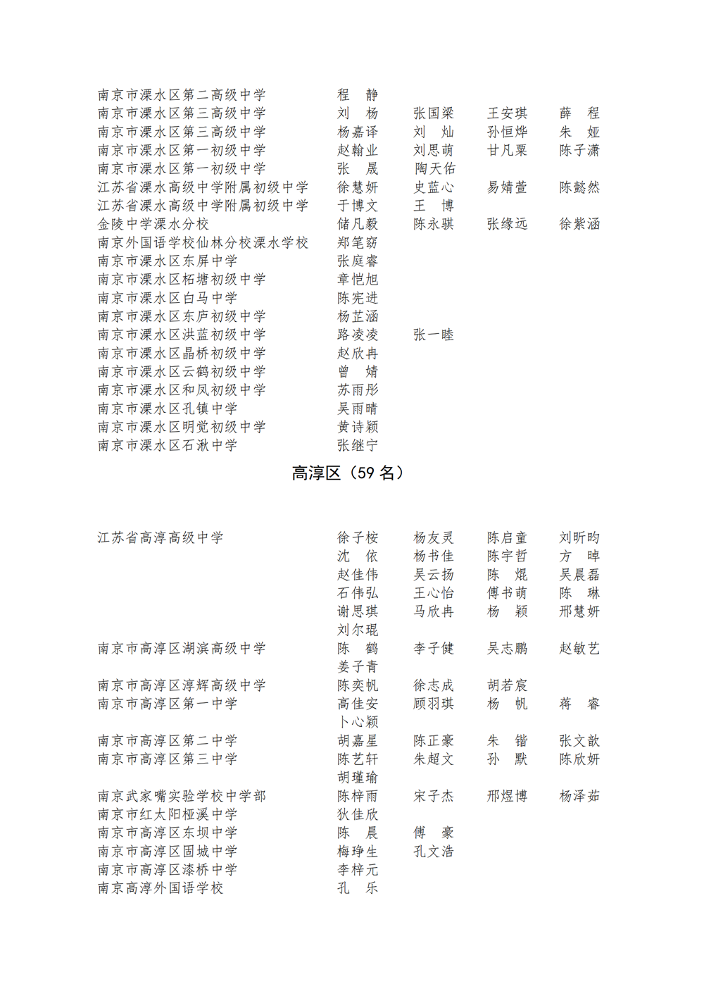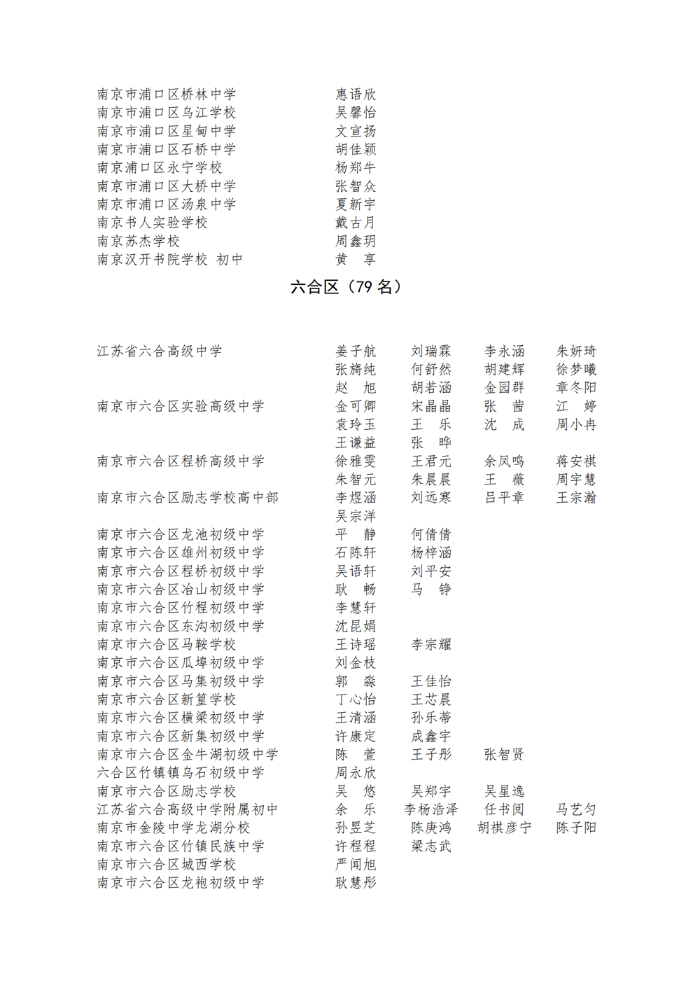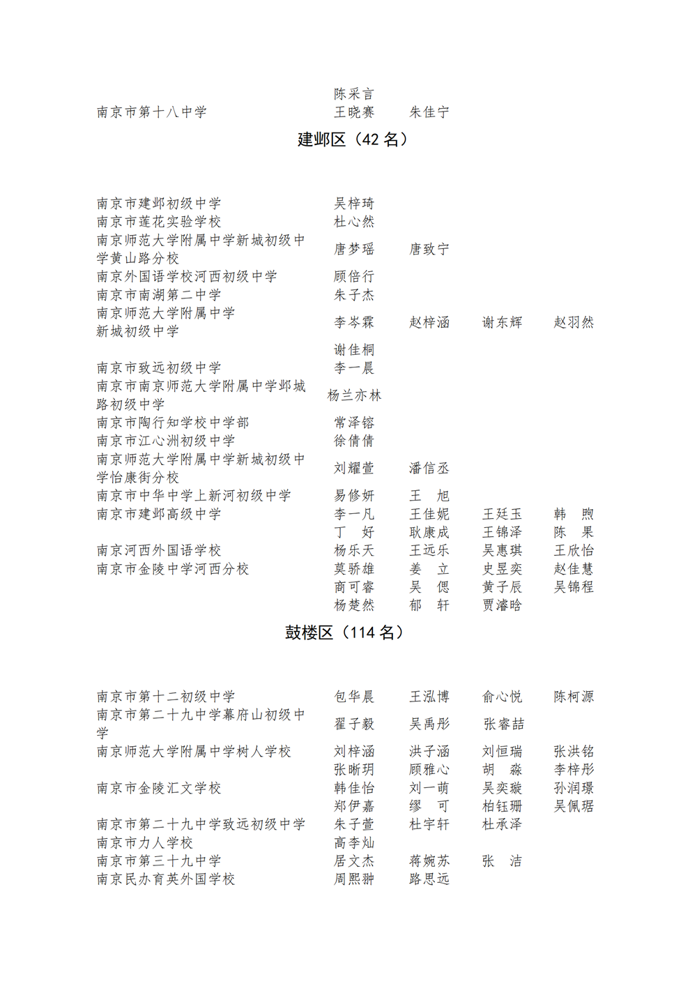 关于2023-2024学年南京市普通中学三好学生、优秀学生干部、先进学生集体名单的公示