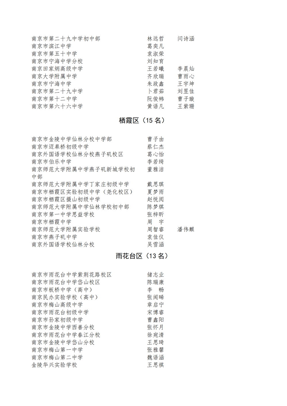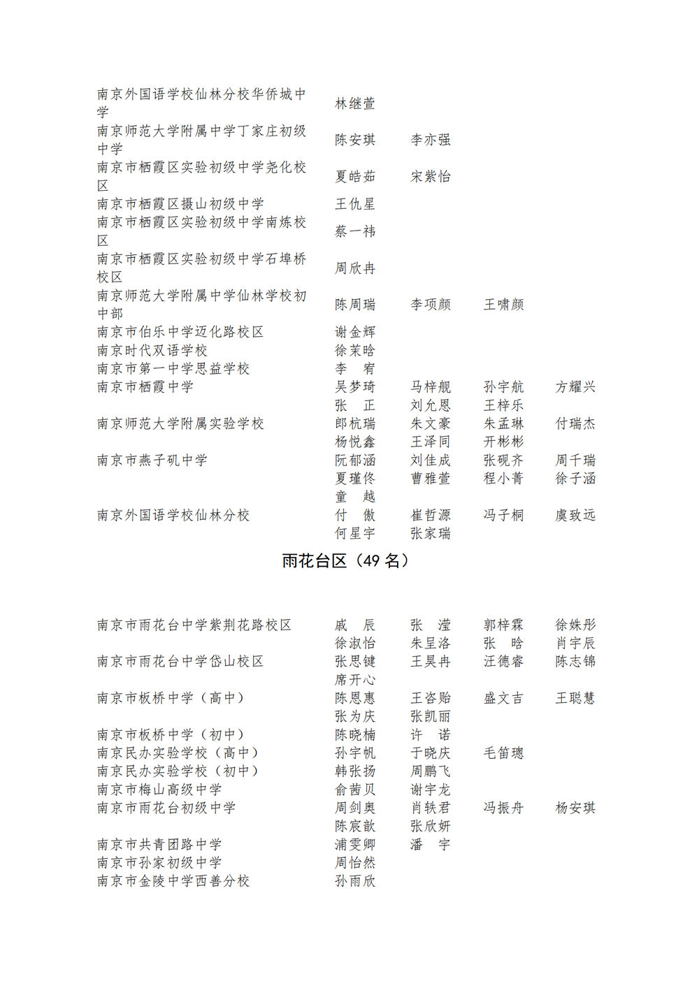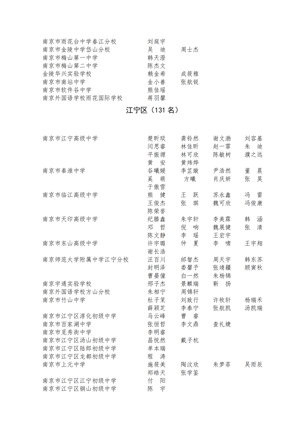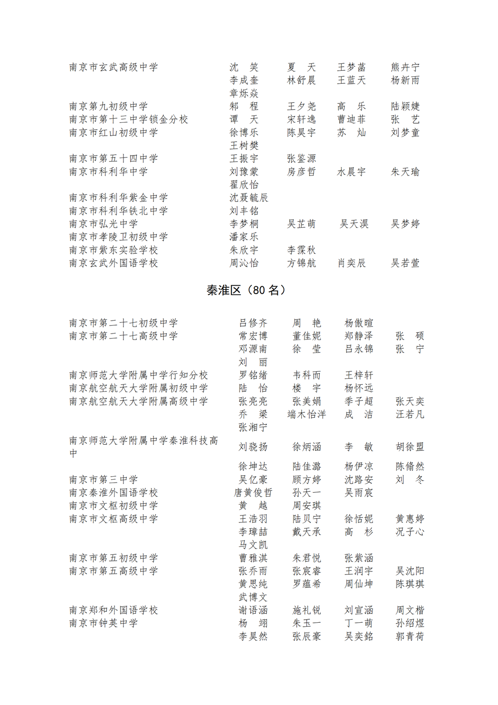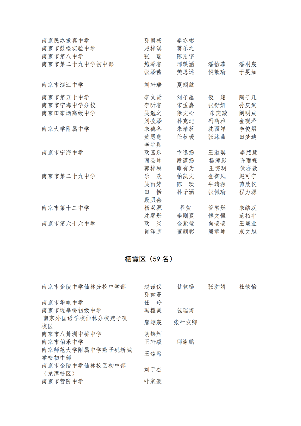 经各校、各区教育局评选推荐,市教育局审核,现将2023-2024学年南京市普通中学三好学生、优秀学生干部、先进学生集体名单予以公示,公示时间为:2024年4月2日至4月8日,如有异议,请与我局中学教育处联系,电话:025-83639961。