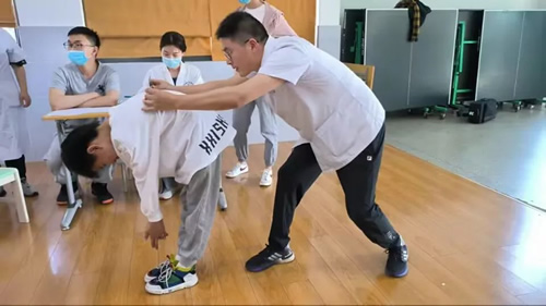 讲座结束后中大医院康复医学科团队为学生开展脊柱侧弯的筛查,通过专业仪器设备及人工测量的方式,细心、耐心的为每一位学生进行了现场脊柱检查。