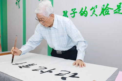陈尚军副局长向顾明远先生一行介绍了南京教育的基本情况,邀请顾明远先生在全市弘扬和践行教育家精神的工作上给予更多的指导与帮助。顾明远先生高度肯定了南京教育取得的成绩,希望南京教育在学生心理健康、课程教学改革上做出更多的有益探索。芳草园小学的孩子们向顾明远先生献上了自制礼物。顾明远先生为市教科所“记忆育德”研究项目和《南京教育文库》作者代表题字。