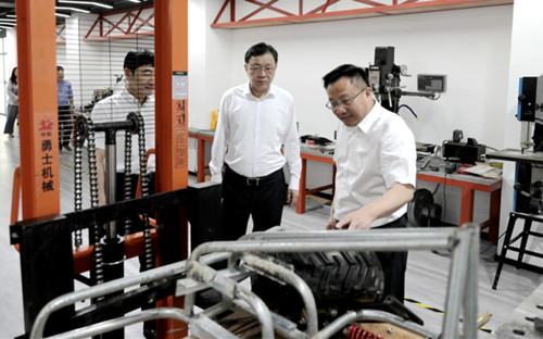 当天,杨岳一行实地参观了南京一中浸润式学习课程基地,认为学生的创新能力很重要,这些场所为学生提供了动手实践的机会。学校注重创新、注重实践环节,在日常中激发学生创造能力,点燃青少年科学梦想。“这既符合人才成长规律,也符合教育规律,学校特色科学课程建设值得肯定。”