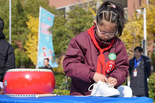 小学生劳动技能竞赛在光华东街小学开赛。低年级组学生人小本领大,纤细灵活的手指左拉右绕,动作娴熟,转瞬间一只只蝴蝶立在小小鞋船之上;一双巧手,一把小刀,或剥、或切、或拼,食盘中的香蕉姿态万千;一声令下,指尖翻飞,哨声响起,颗颗毛豆躺在圆盘上;抚平衣领,折叠双袖,对齐裤脚,一件件衣裤方方正正如熨烫过一般;几滴清洗剂,一盆清水,反复搓洗之间,原本沾染污渍的毛巾重获新生。