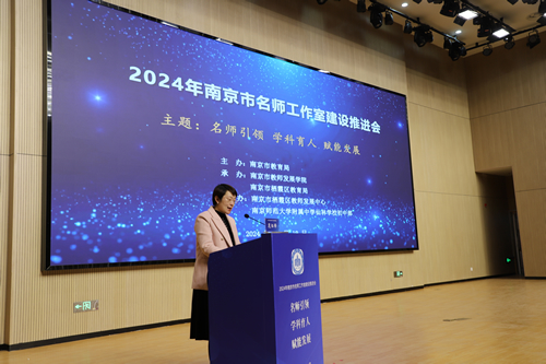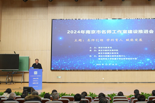 12月19日下午,由南京市教育局主办,南京市教师发展学院、栖霞区教育局承办的2024年南京市名师工作室建设推进会在南京师范大学附属中学仙林学校初中部文澜路校区召开。会议以“名师引领 学科育人 赋能发展”为主题,深入探索学科育人与综合育人实践样式,推动区域名特优教师集群发展。市教育局分管领导及相关处室负责人,各区教育局分管领导,南京市名师工作站联席部门负责人及联络员,各区教师发展中心(进修学校)主任(校长),第七、八、九批南京市名师工作室及第三、四、五批南京市德育名师工作室主持人,栖霞区名师工作室主持人和教师代表等近240人参加了会议。