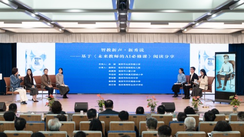 会议首先由玄武区教育局副局长林虹致欢迎辞,介绍玄武区在AI赋能教师发展方面的探索与实践。随后,北京东路小学书记余颖主持了一场别开生面的读书分享会,6位来自幼儿园、中小学、职业学校的教坛新秀代表,结合《未来教师的AI必修课》阅读心得,围绕教育理念、课堂教学、个性化学习、五育并举等主题,分享AI工具在备课、教学、评价、育人中的应用实践,展现出青年教师主动拥抱数智变革、创新教学模式的活力与思考。