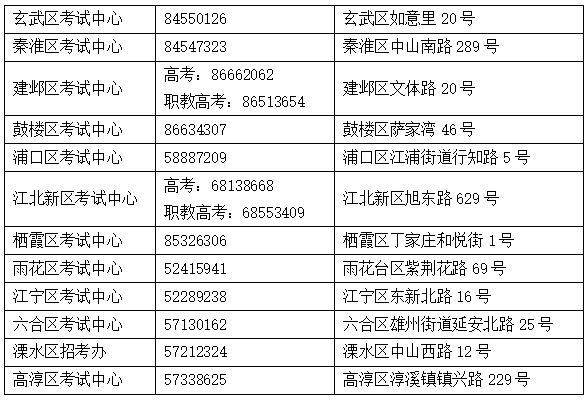 各区考试中心(招考办)咨询电话、地址如下: