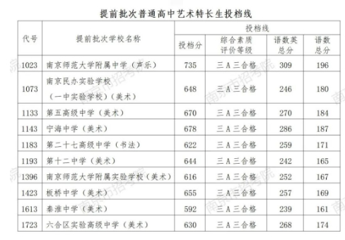 三、招收艺术特长生的学校,在专业加试合格且中考成绩达到投档控制线490分的特长生中,按专业加试成绩与中考成绩之和从高分到低分录取,共招收571人(含提前批次美术征求3人)。