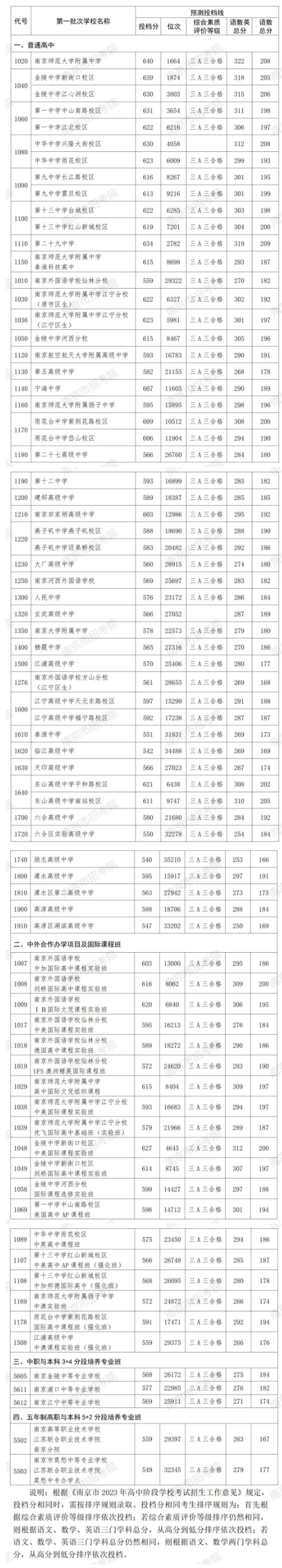 一、南京外国语学校(校内生部分,中外合作办学项目及国际课程班除外)按照考生中考成绩与外语加试成绩之和从高分到低分录取。