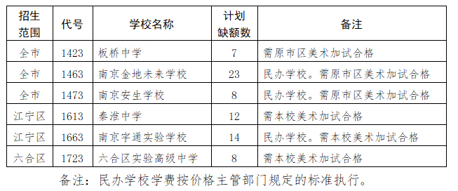 部分招收美术特长生的普通高中未完成招生计划,需征求志愿。具体信息如下: